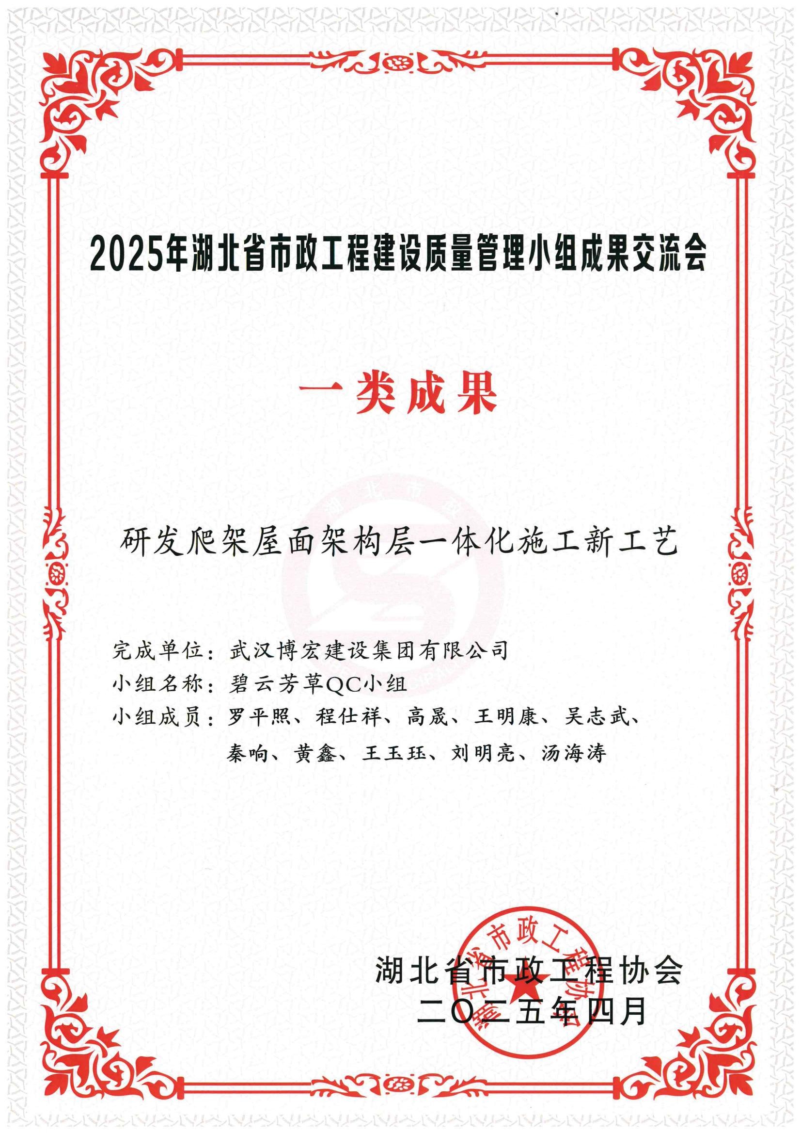2025湖北省市政程协会-研发爬架屋面架构层一体化施工新工艺