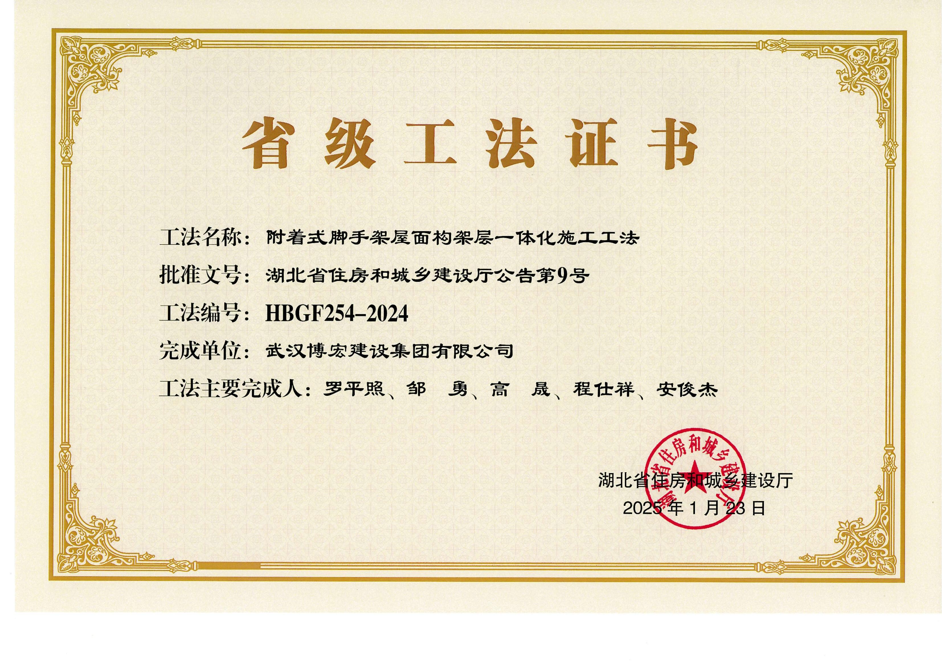 2025年湖北省住房和城乡建设厅-附着式脚手架屋面构架层一体化施工工法