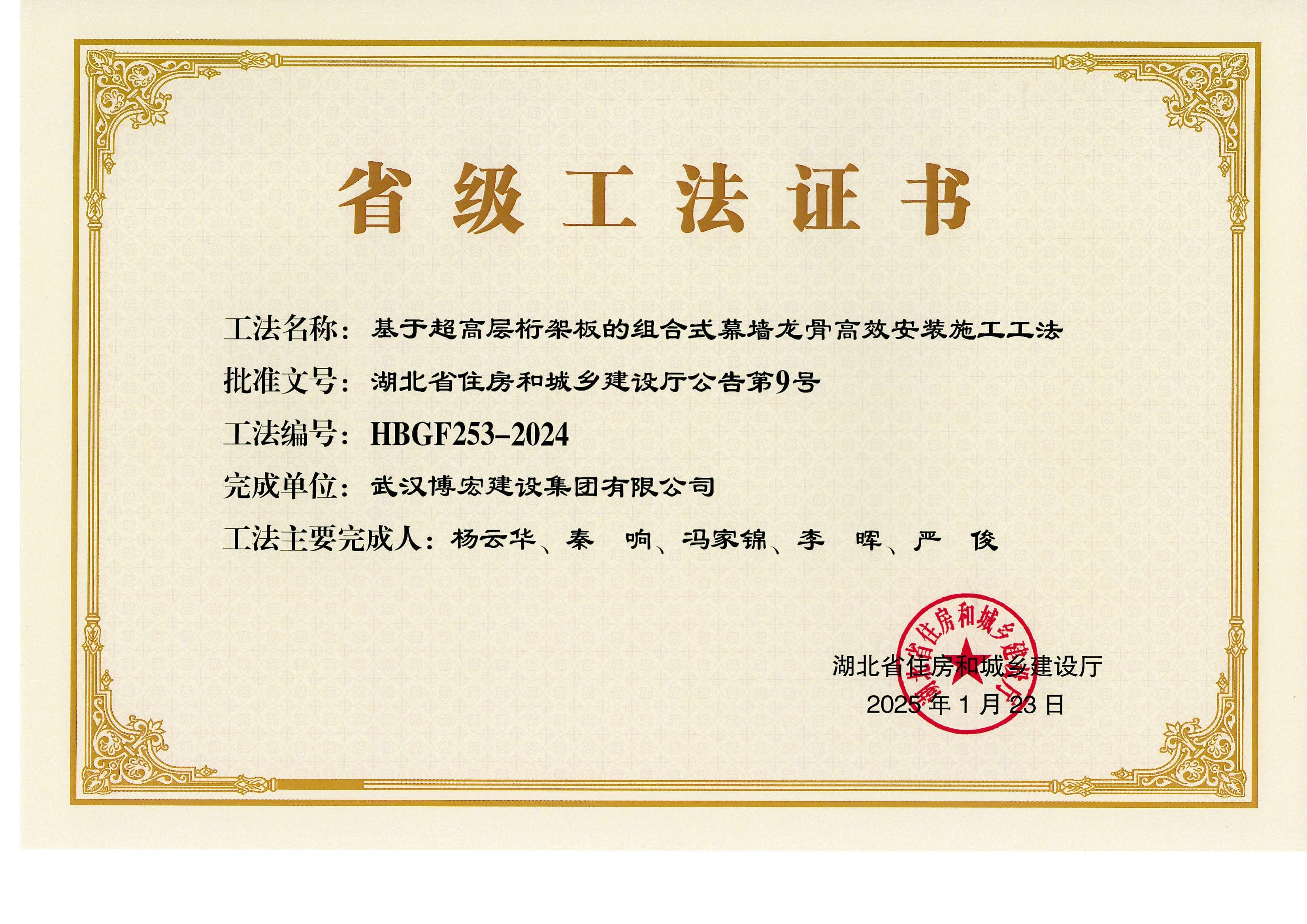 2025年湖北省住房和城乡建设厅-基于超高层桁架板的组合式慕墙龙骨高效安装施工工法