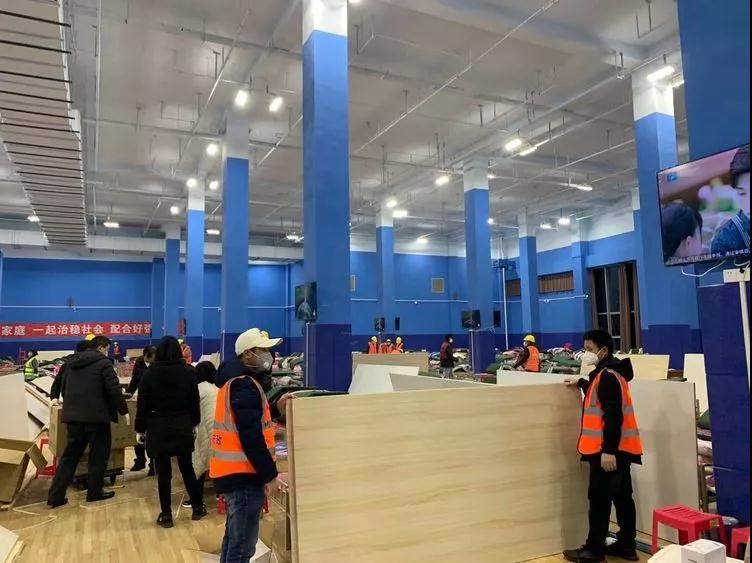 通过连夜奋战,2月12日上午10点,公司协助施工的部分通风管道和近300张床位的隔断工作全部完工。