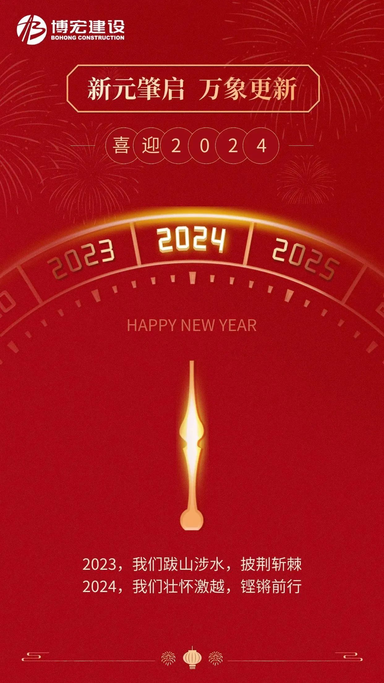一元复始,万象更新。站在2024年的新起点上,我们满怀深情地回望极为不凡的2023年。在过去一年里,我们坚持以习近平新时代中国特色社会主义思想为指引,保持战略定力,坚定必胜信心,以敢打敢拼的硬朗形象,坚定有为的必胜心态,不负光阴的奋斗姿态,于爬坡过坎中闯关夺隘、在激流险滩中奋楫破浪,奏响了属于博宏人光荣与梦想的壮美乐章。